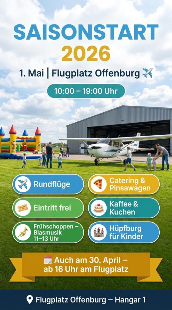 Ein herzliches Dankeschön an alle, die für den Erhalt unseres Flugplatzes gestimmt haben! Gemeinsam haben wir ein starkes Zeichen gesetzt. Das möchten wir mit euch feiern: Am 30. April und 1. Mai laden wir zum Saisonstart auf den Flugplatz ein. Freut euch auf schöne Momente, Begegnungen und Gemeinschaft. Weitere Infos folgen – wir freuen uns auf euch!