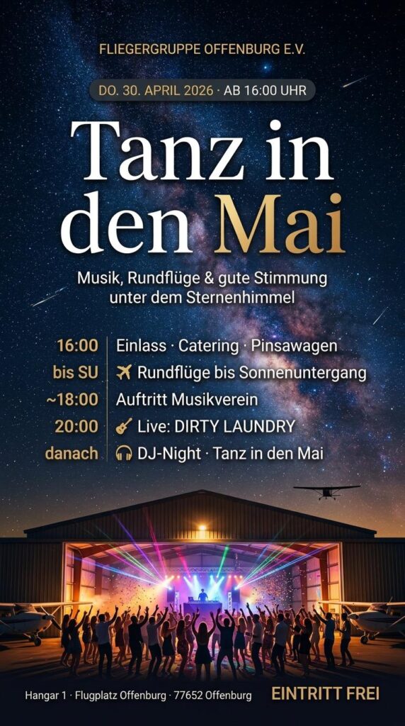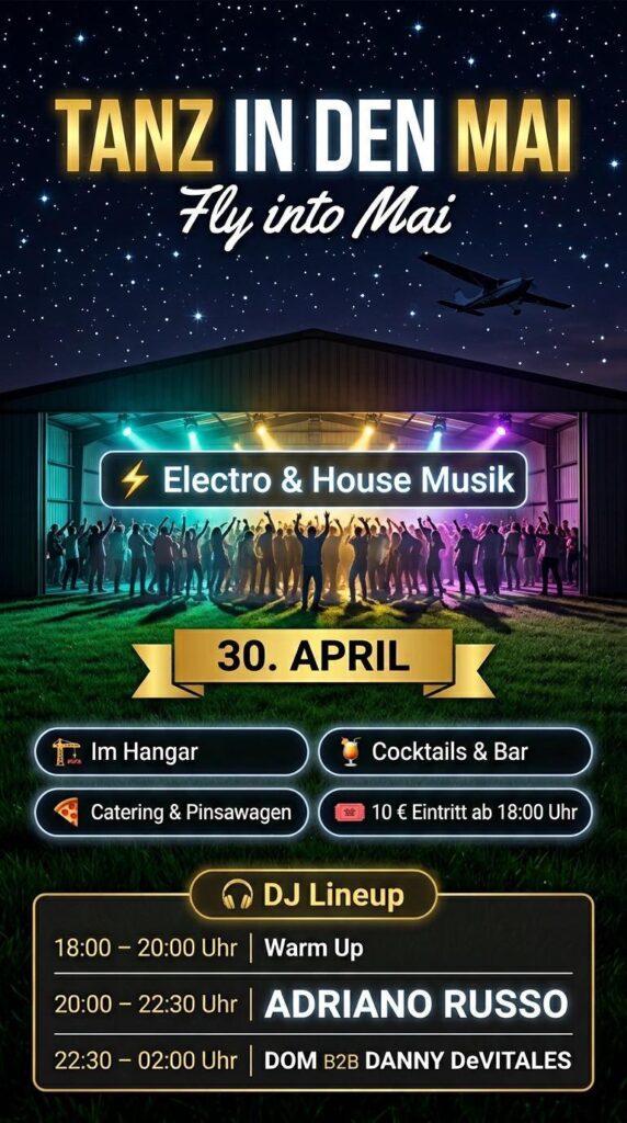 Feiere mit uns den „Tanz in den Mai“ am 30. April im Hangar